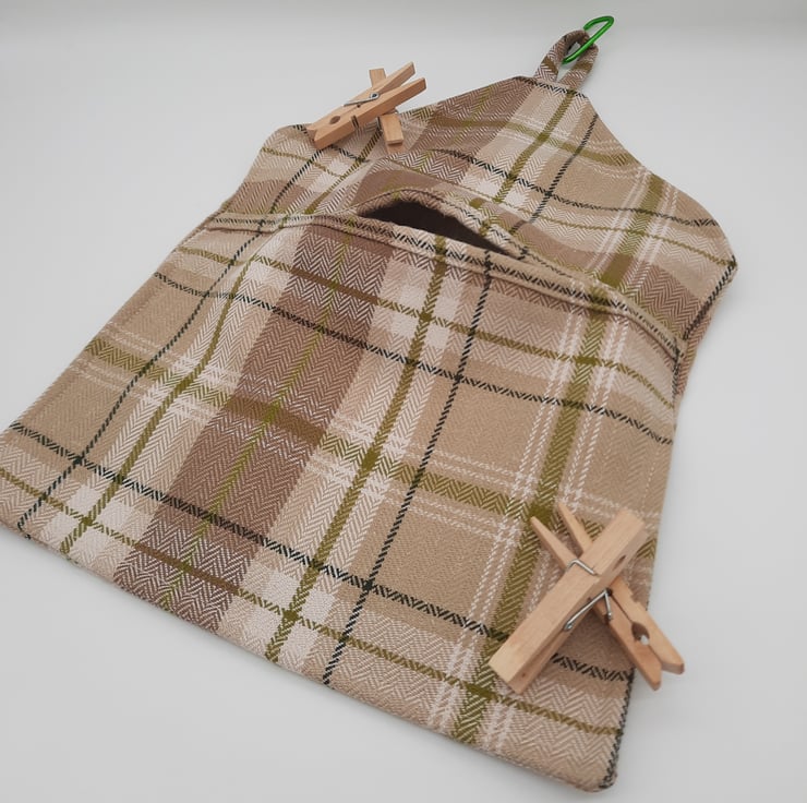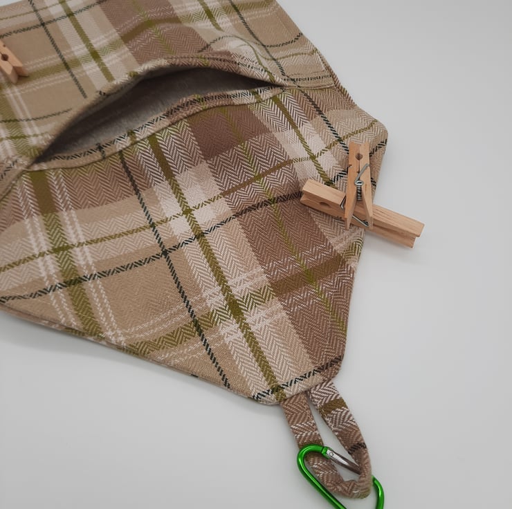 It has been linded with a cream fleck cotton. The opening is binded with the tartan fabric and I have double seemed the outer edge to stop any fraying. This makes it machine washable at 30.