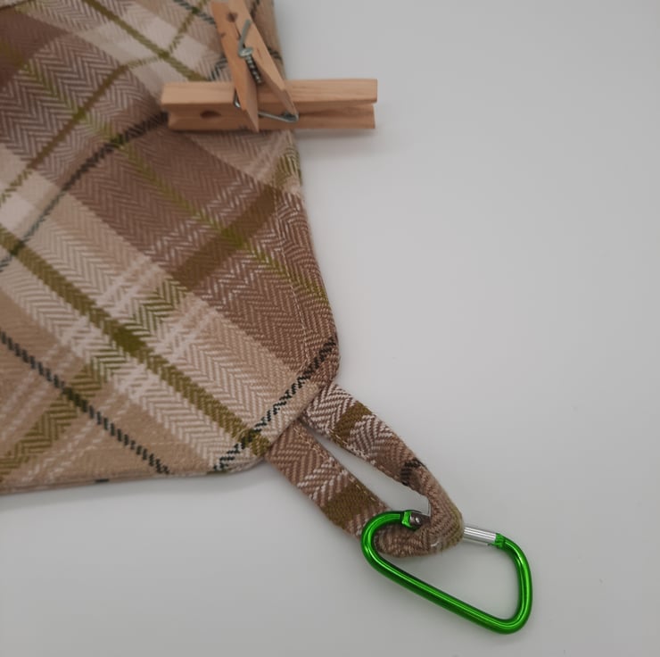 It has a unique green carabiner clip attachment so you can clip it to your washing line.