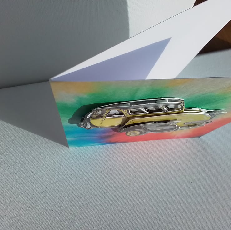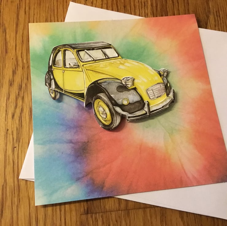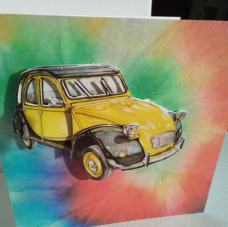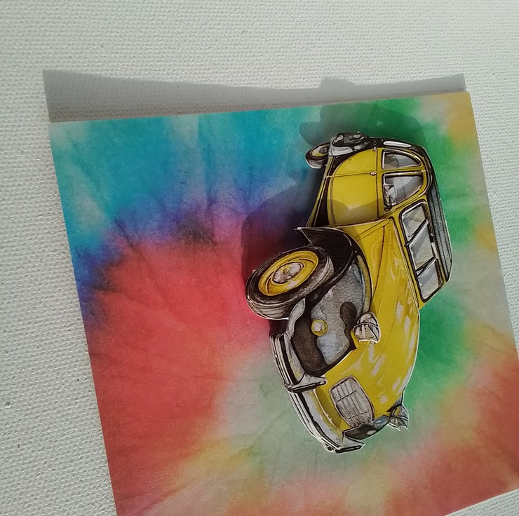 A yellow car on a burst of colour!