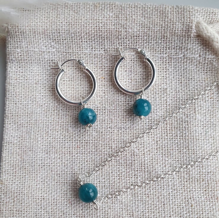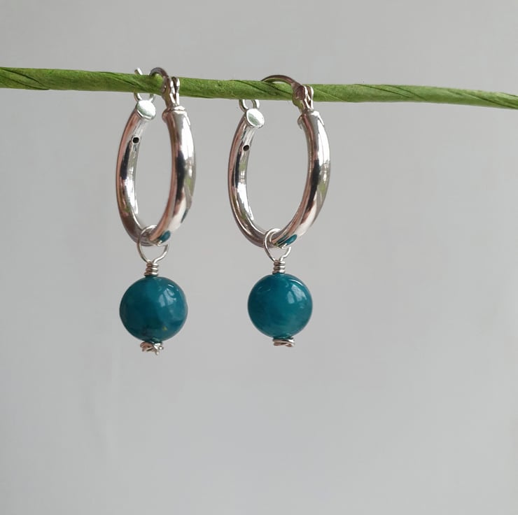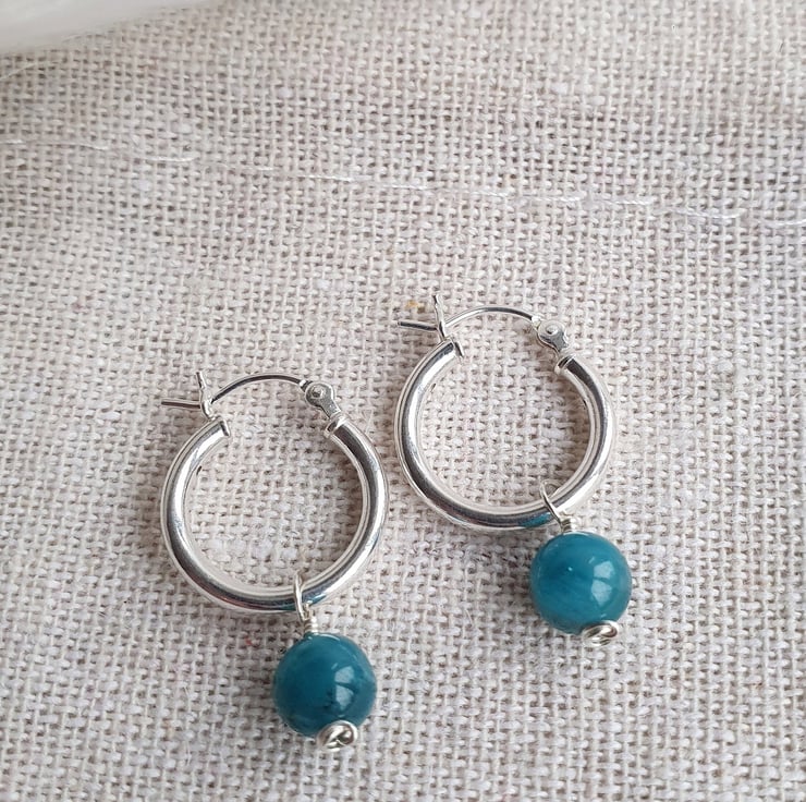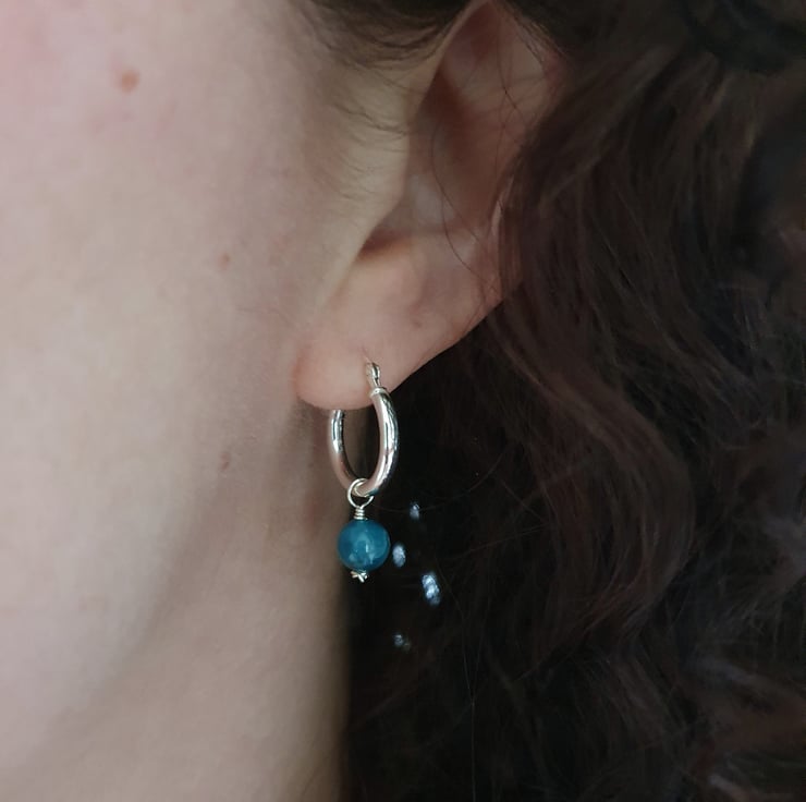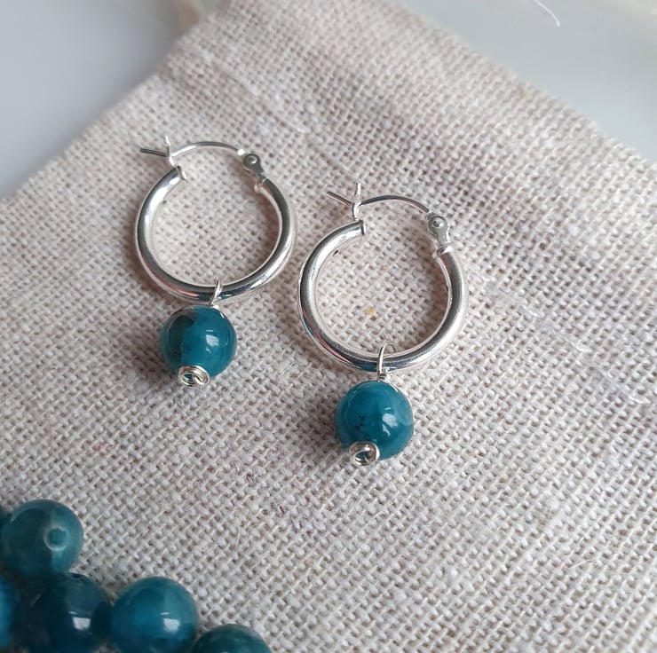 Beautiful single bead top grade apatite hoop earrings. These are dainty and versatile, ready to be worn for any occasion.