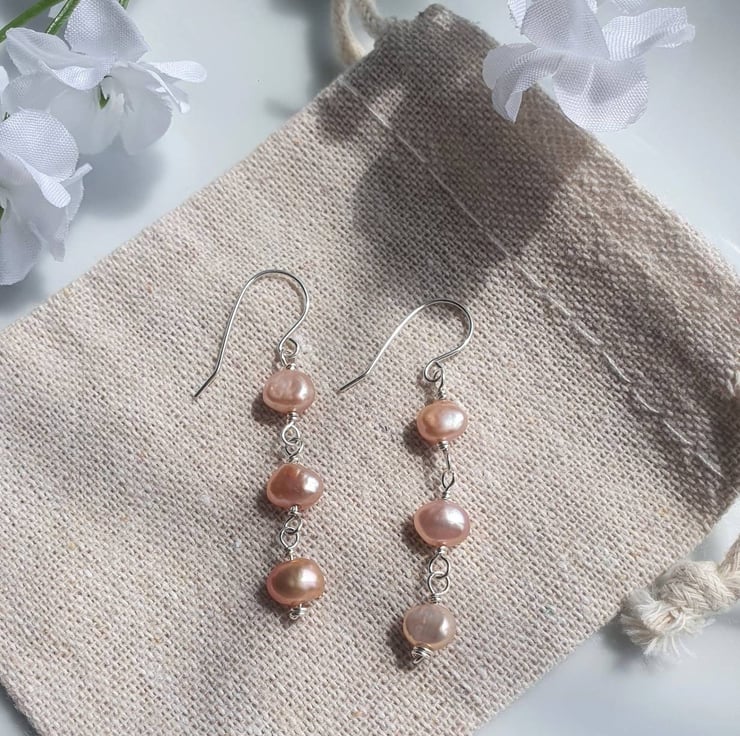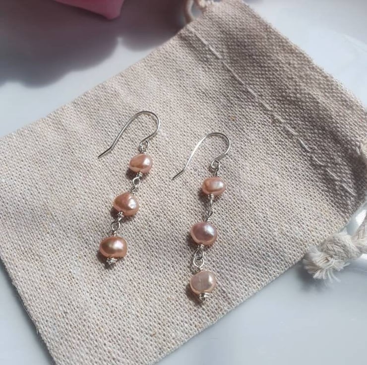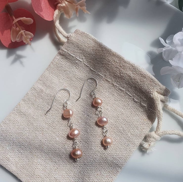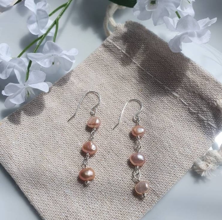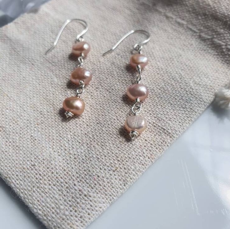 Made with 6mm size freshwater pearls with a gorgeous rose pink - peach colour and recycled sterling silver wire.