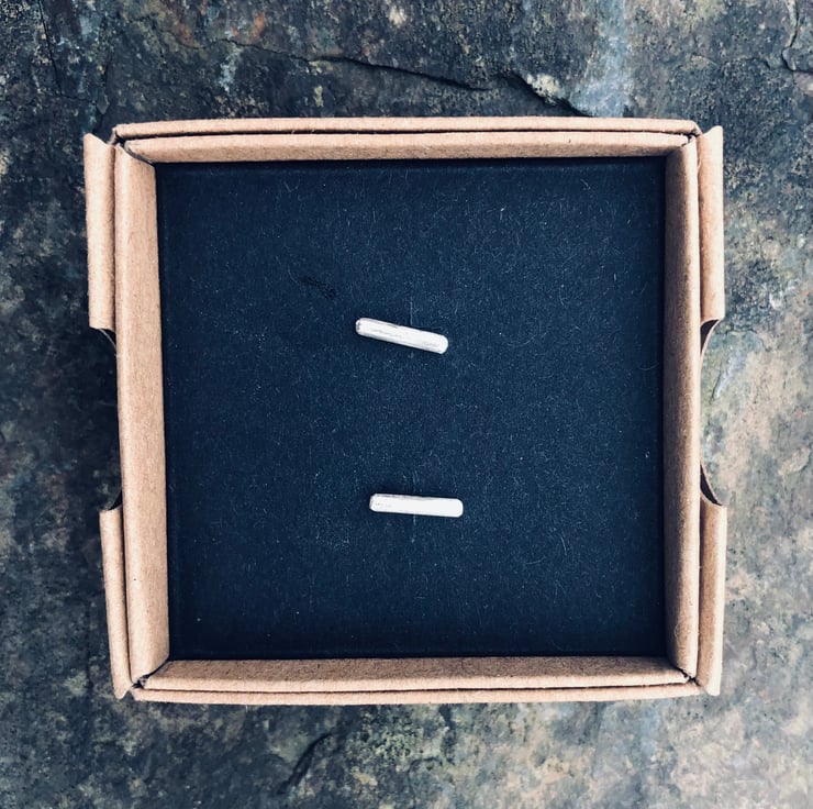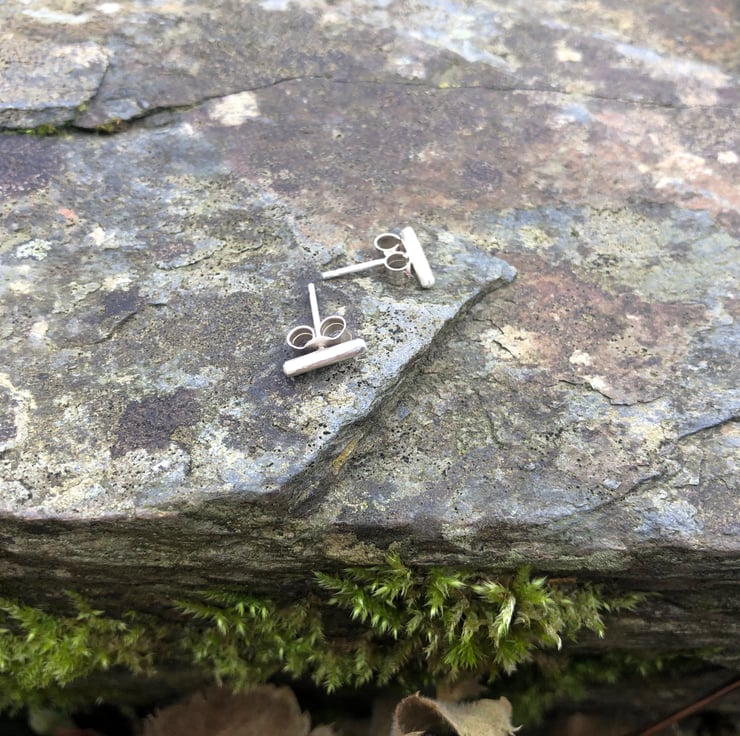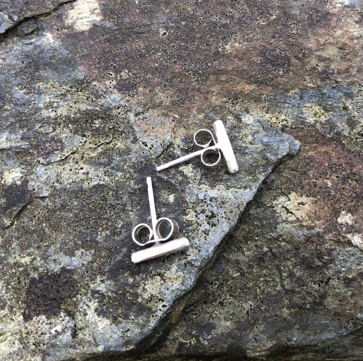 Sterling silver round bar studs, which are 1.6mm thick and 9mm long. I have soldered the sterling silver ear post in the middle . They could hang vertically or along the earlobe.