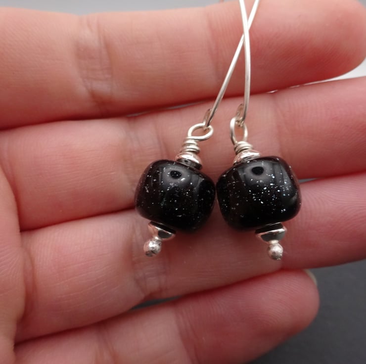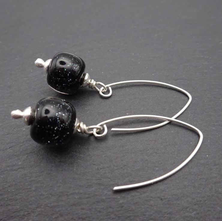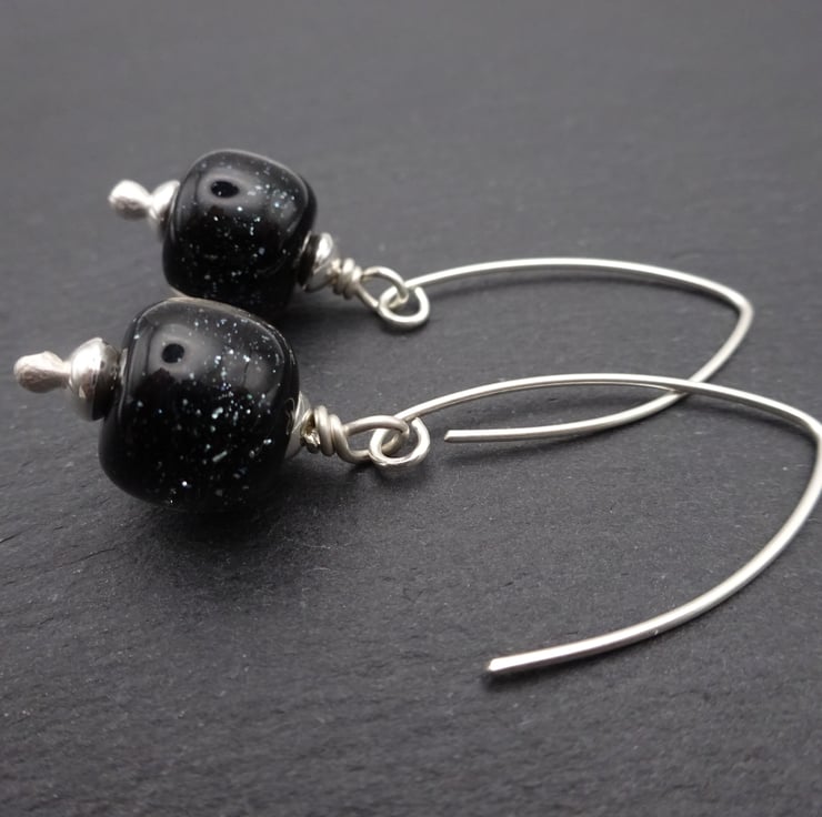 The lampwork beads have been handmade by me using black glass with subtle glints of glitter in.