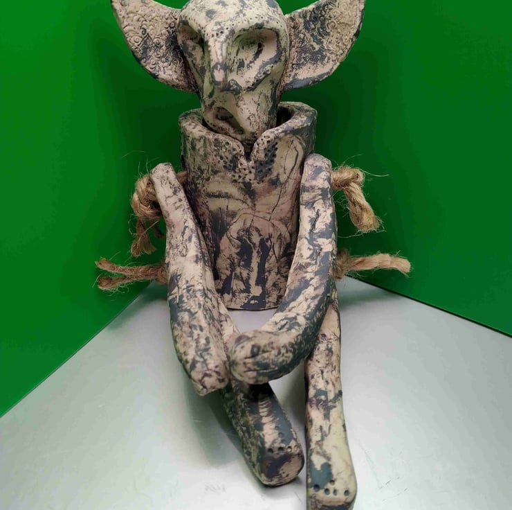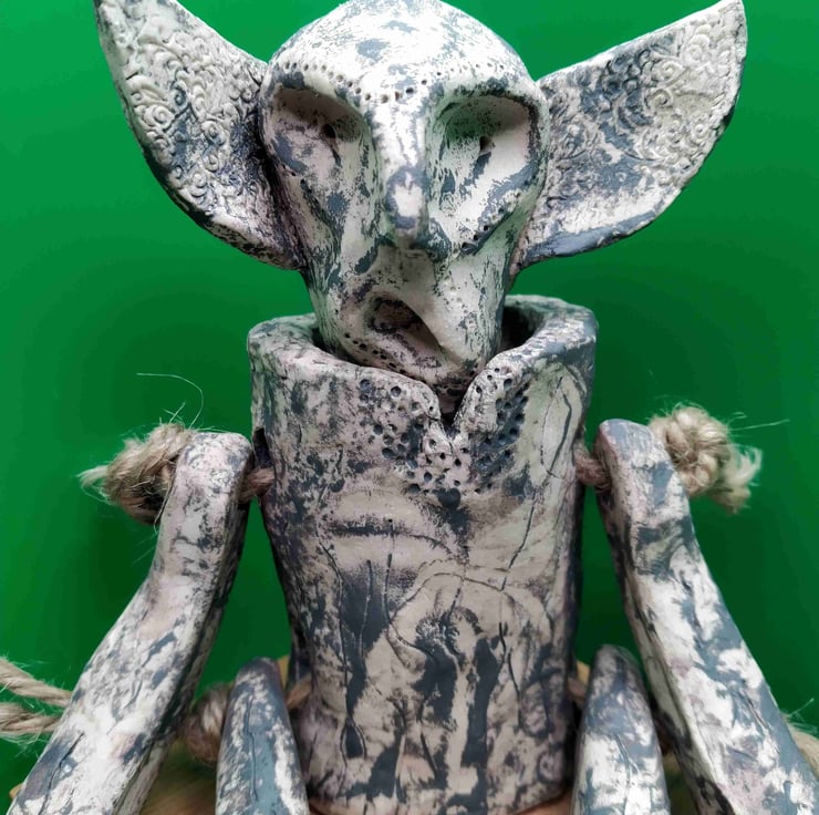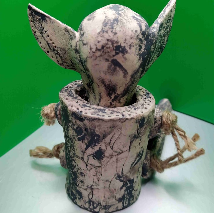 Ceramic alien ( not a toy), landed in my hands & into the kiln.
