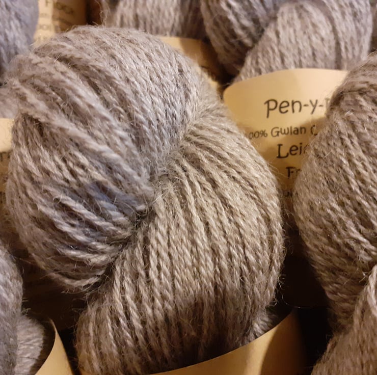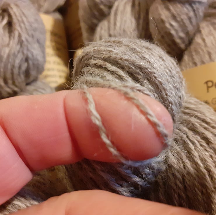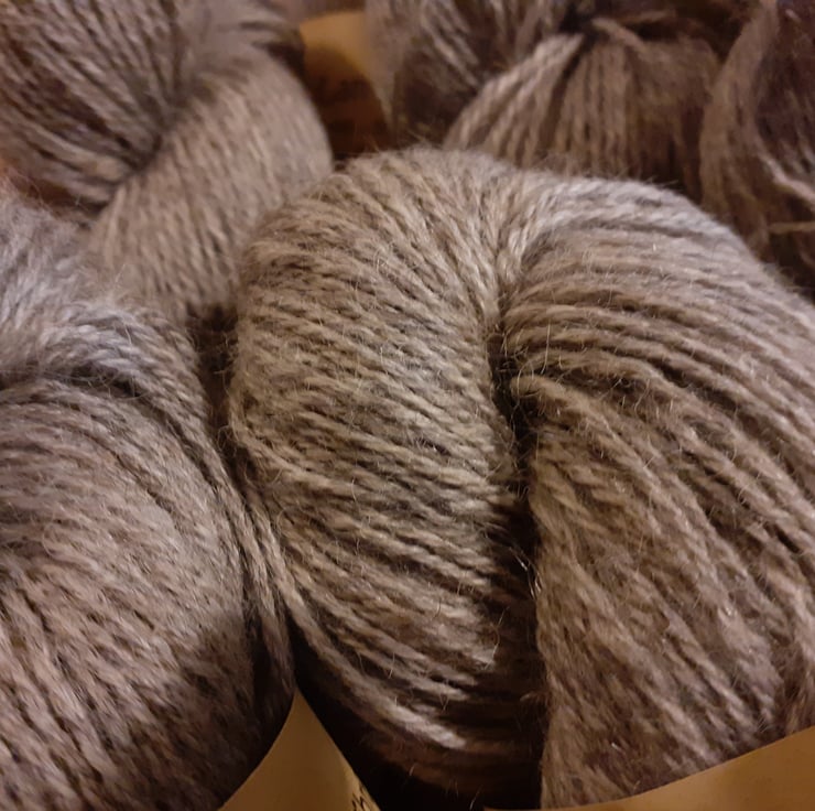The yarn is semi lustrous and is in its natural grey colouring.