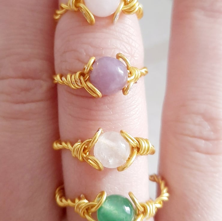 Beautiful handmade custom wire wrapped rings made with gemstones or beads. Can be created to any size.