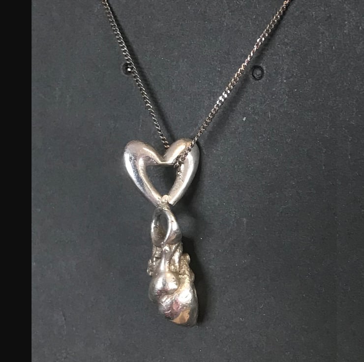 This Heart to Heart silver pendant features a very realistic heart with a romantic heart.