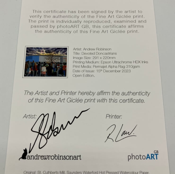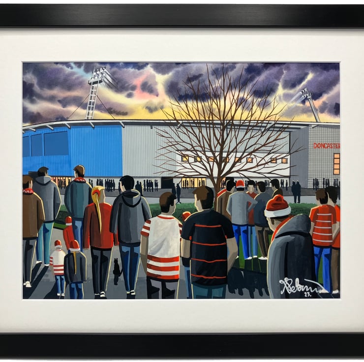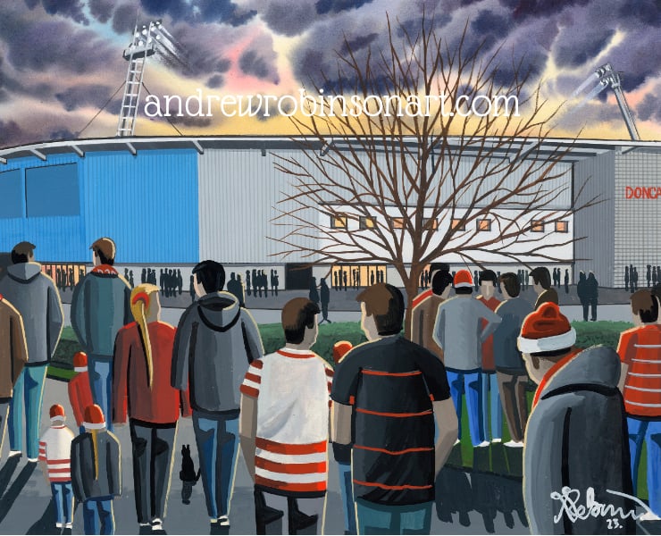 Titled ‘Devoted Doncastrians’ this is a unique Doncaster print direct from myself the artist. My artworks are a celebration of the match day experience and of stadium architecture.