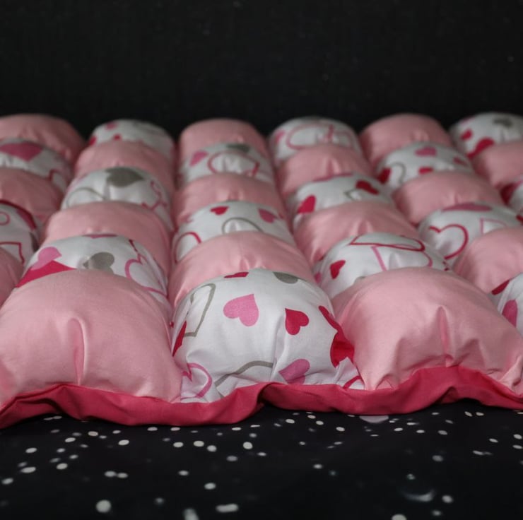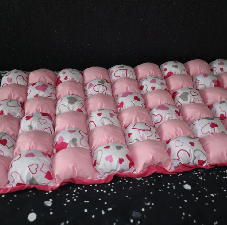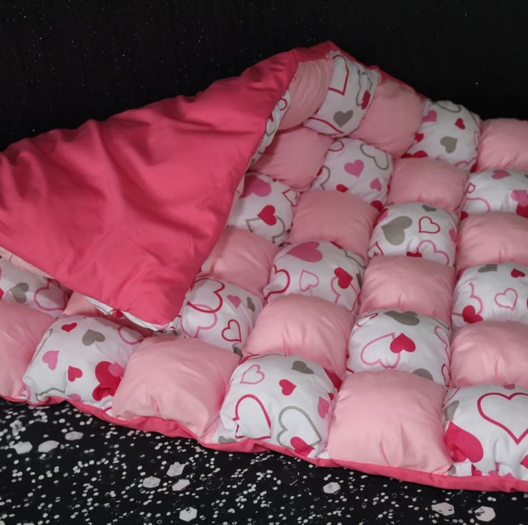 Unique handmade blanket. For your baby's comfort. Sewn from many individual textile squares. Each one is hand filled with polyfill. Perfect for your newborn, a soft and comfortable play mat, tummy time for your baby, and a beautiful backdrop for your photos! Size70/110cm.