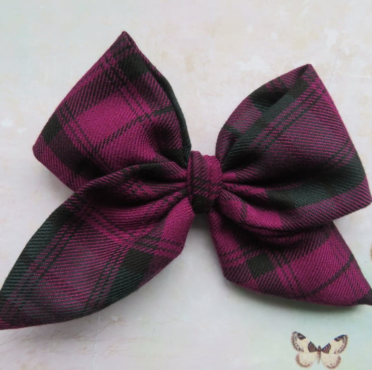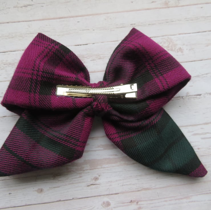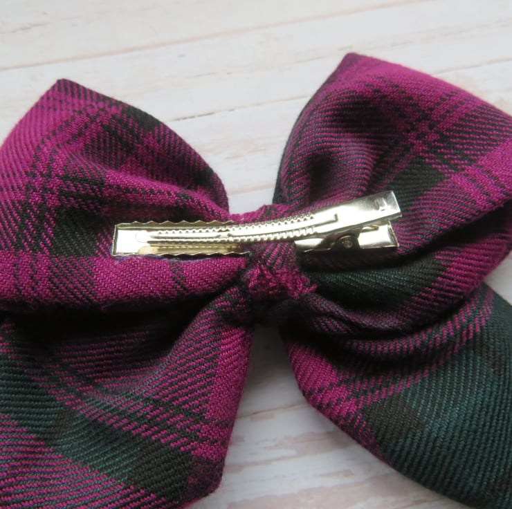 Handmade with lightweight magenta, bottle green and black 'Fashion;' tartan fabric, which is not affiliated to a Clan.