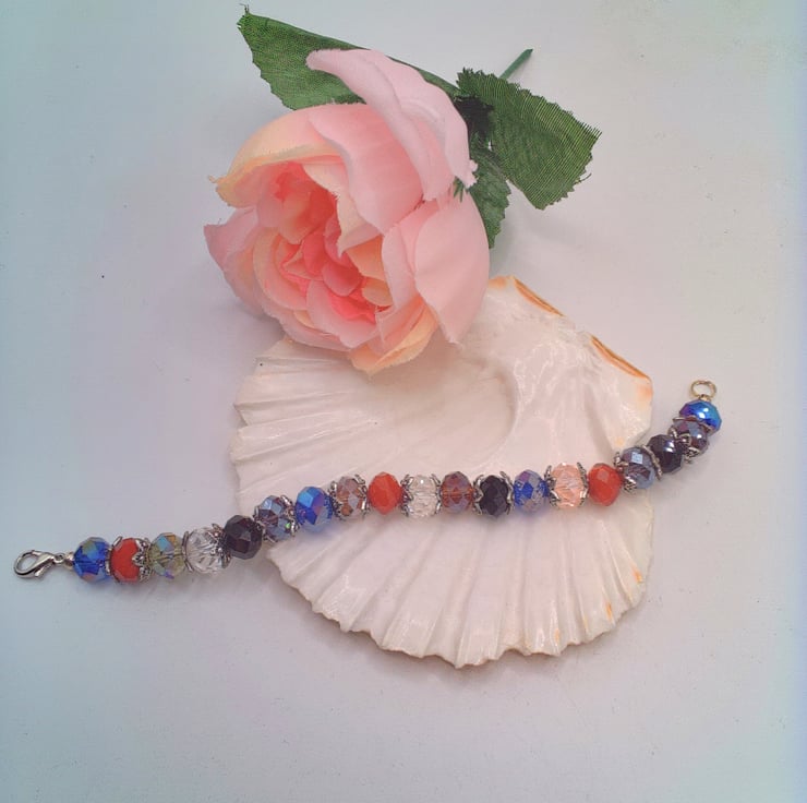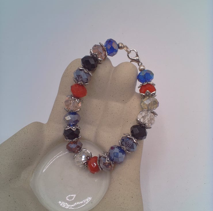 Multi Coloured Crystal Bracelet with Silver Plated Bead Caps, Gift for Her, Accessories, Jewellery, Birthday Gift, Anniversary Gift, Crystal Bracelet