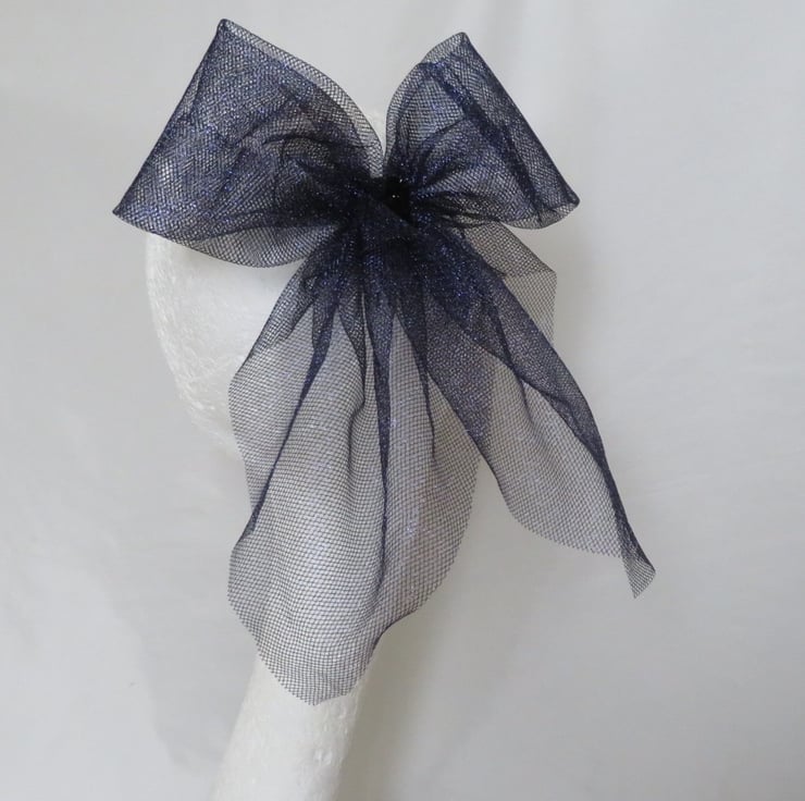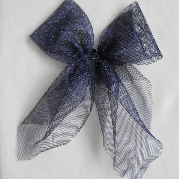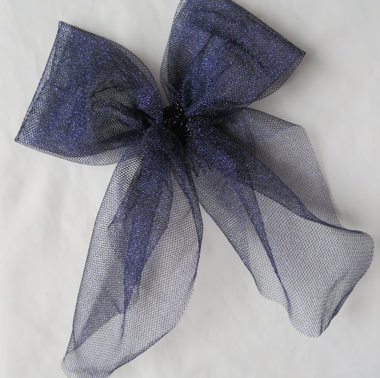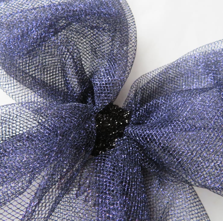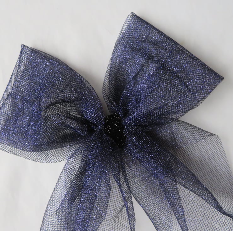 This pretty deep purple & black shimmer tulle hair bow is ready made and can be posted straight away.