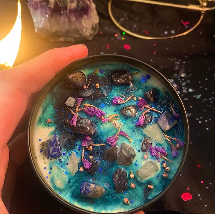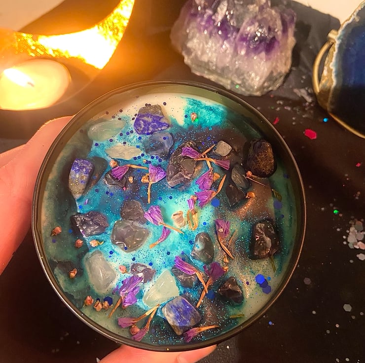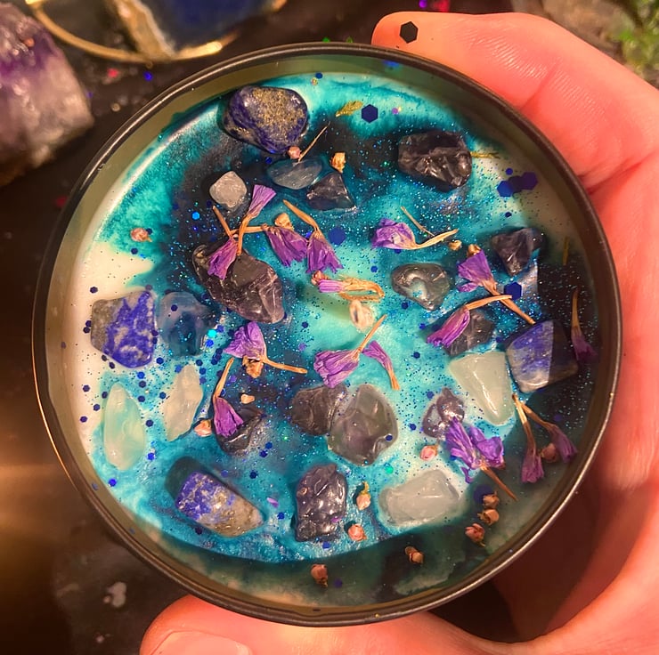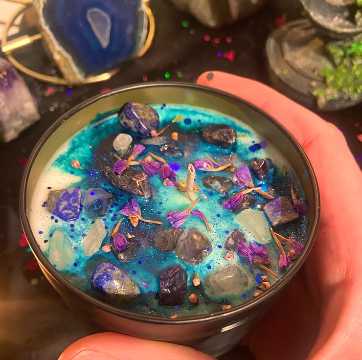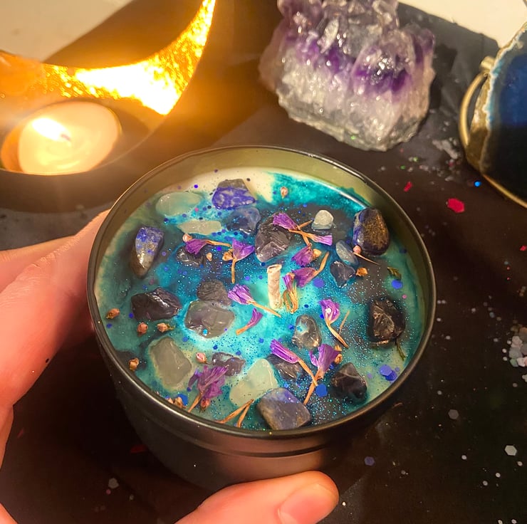 This powerful 8oz spell candle is perfect for healing of all kinds when your mental, emotional, physical or spiritual energy needs a bit of tender loving care. Infused into the candle are beautiful healing crystals such as Rose Quartz, Amethyst and Lapis Lazuli to invoke a wonderful sense of calm and harmony. The candle come with a spell scroll that I have created myself to be recited along side the use of the candle. All candles are hand made using 100% soy wax and genuine gemstones, all natural essential oils and non toxic, odourless and skin safe food grade candle dye. A beautiful gift for a loved one or as a well deserved treat to yourself!