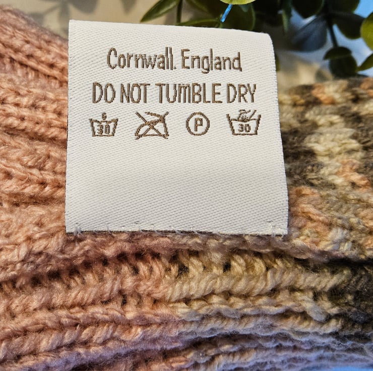 On the inside back seam is the branded luxury soft damask Designs Designs garment label with the care instructions woven within it for lasting reference. A Demelza Designs garment swing tag is attached providing a professional finish if gifting.