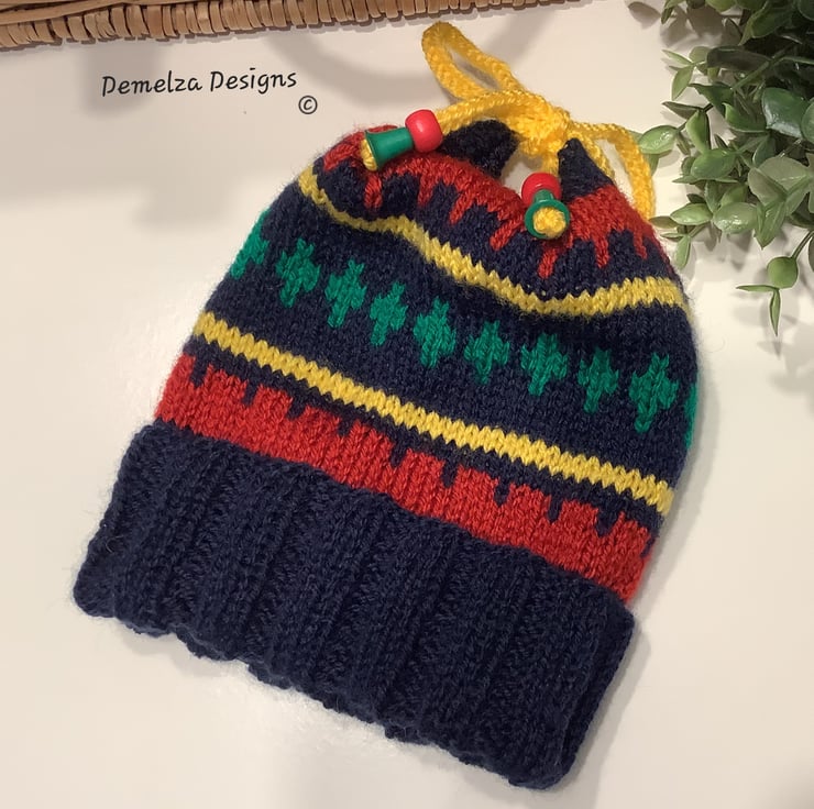 Designer Hand Knitted Fairisle Designer Baby-Toddler's Hat 1-2 years size