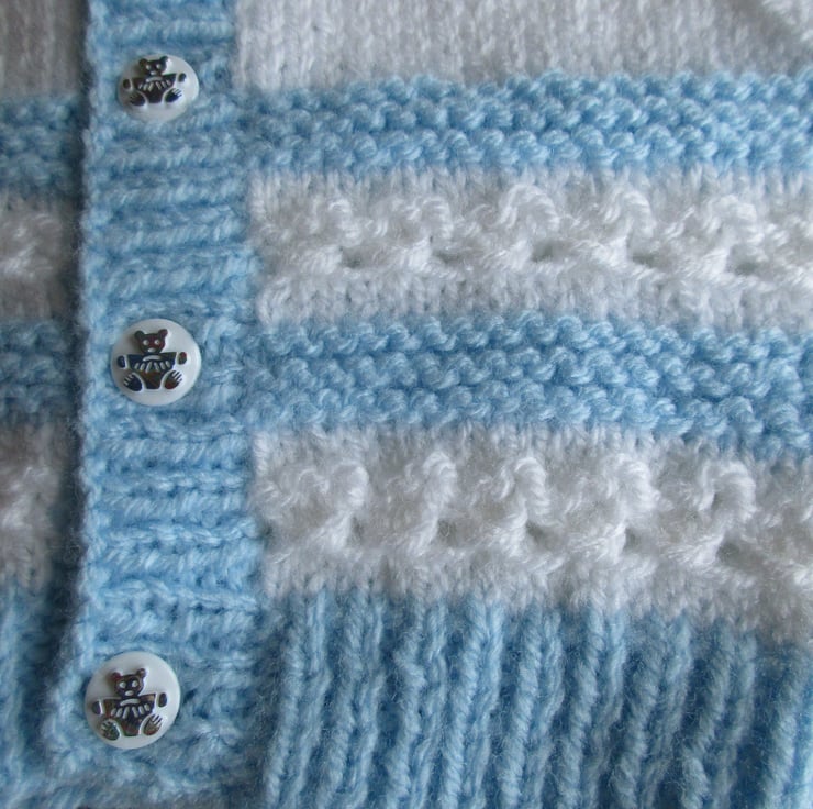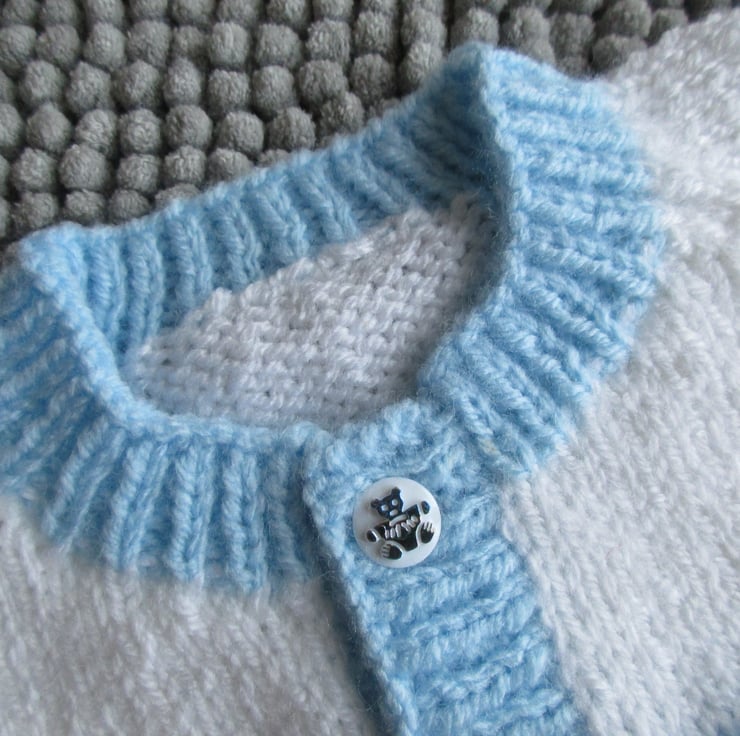 Fastening with 4 White Teddy Face buttons (Boys Way)