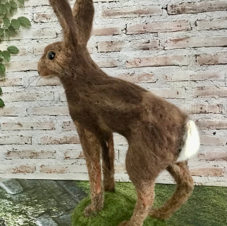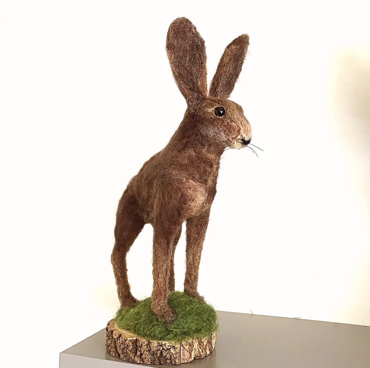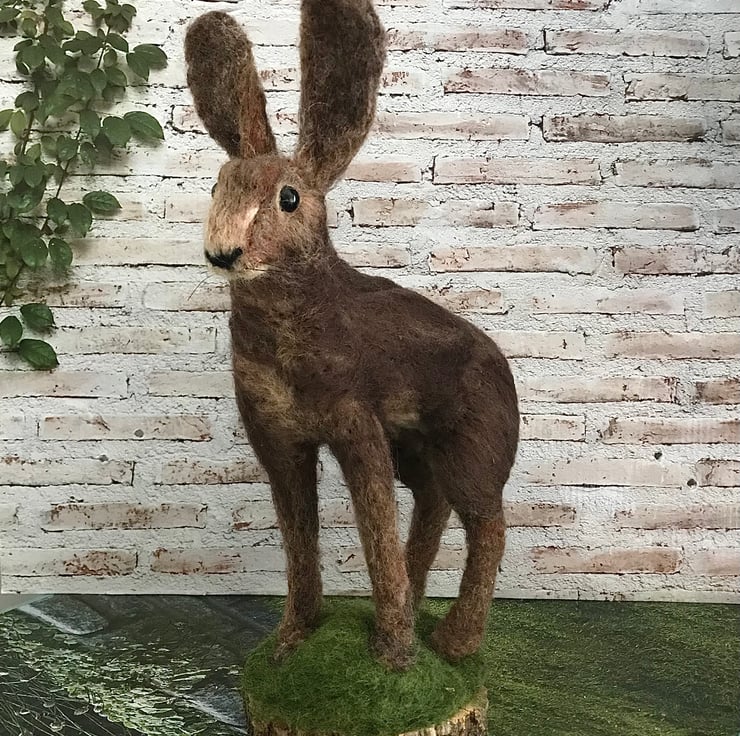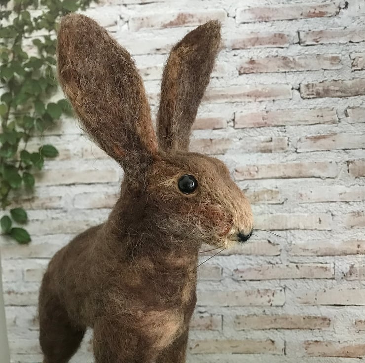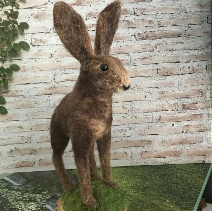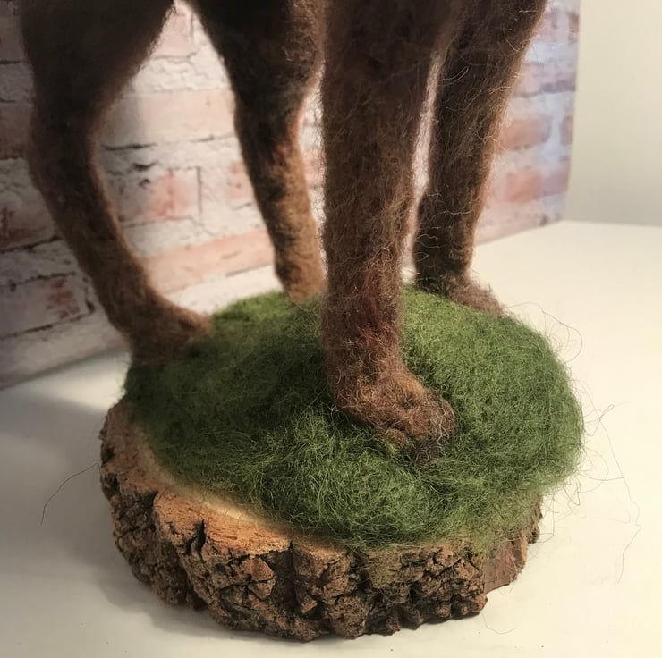 An internal wire is used to wrap the core wool round. Then more core wool is built up to form the shape , before the colours of the fur are felted in . After that, the final sculpting.