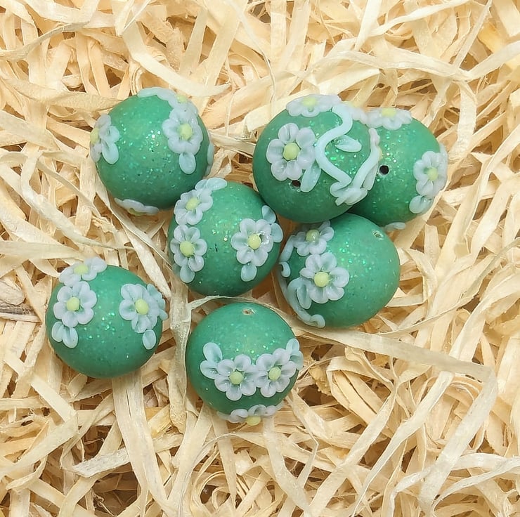 5 of the beads are patterned on 1 side and 2 of the beads are patterned all over so would be ideal for a necklace and earrings set.