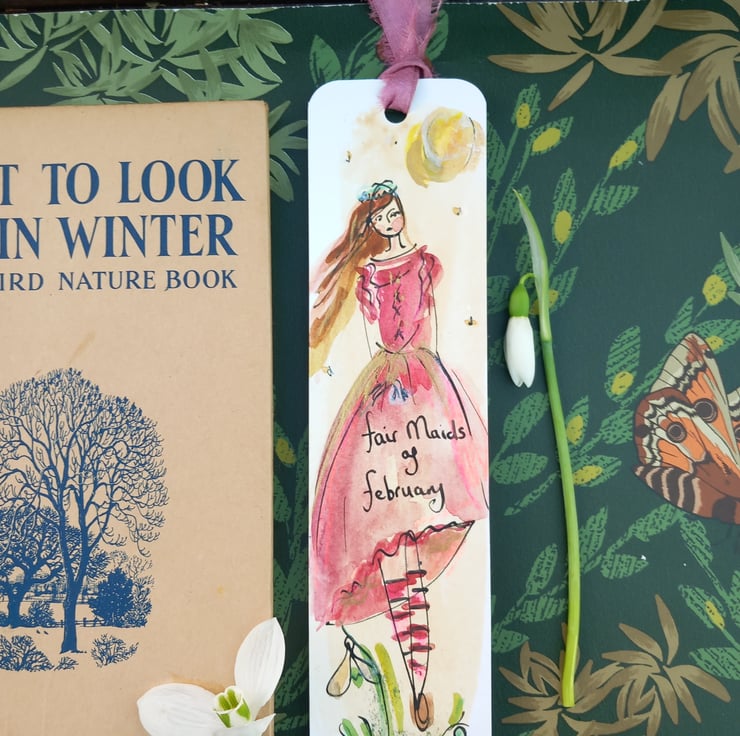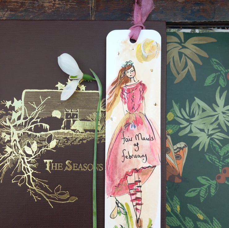 Beautiful illustration on quality card. Hand painted, all individual. Comes thoughtfully wrapped. A small gift for a book lover. This book mark is finished of with a silk trim.