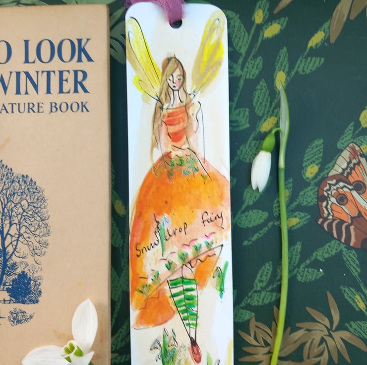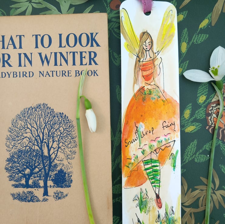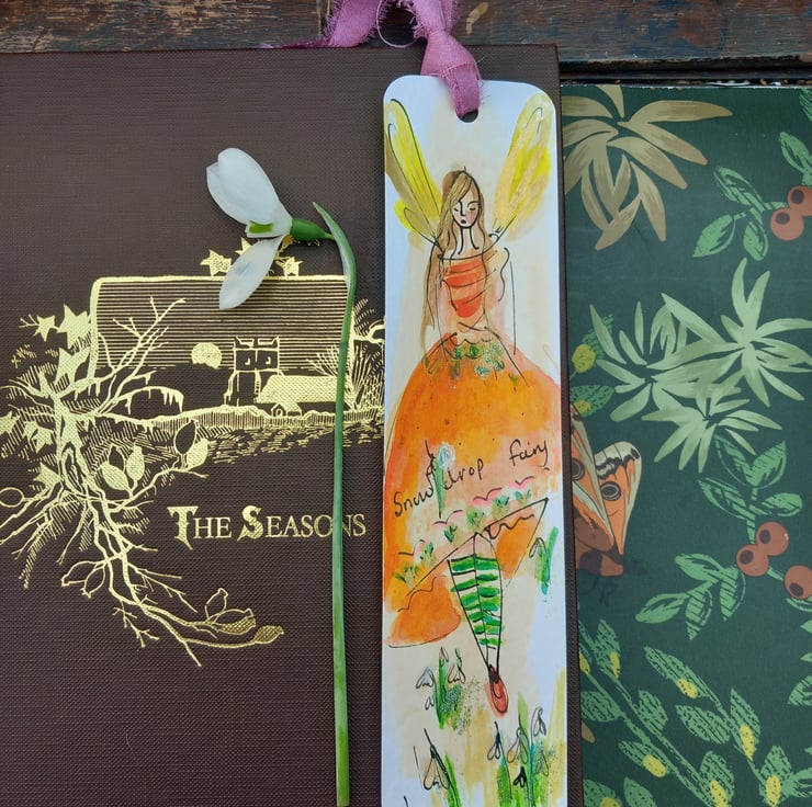 Beautiful illustration on quality card. Hand painted, all individual. Comes thoughtfully wrapped. A small gift for a book lover. This book mark is finished of with a silk trim. ' January month of snow.
