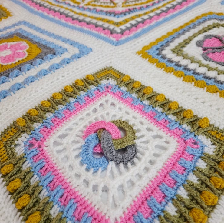 I made this blanket using the stunning pattern "Heart of Friendship" designed by Helen Shrimpton.