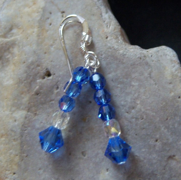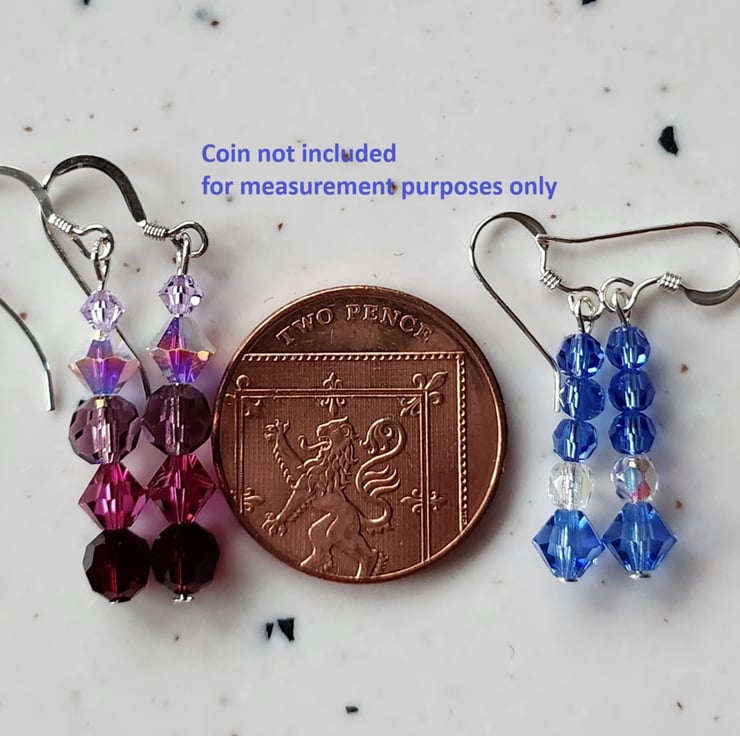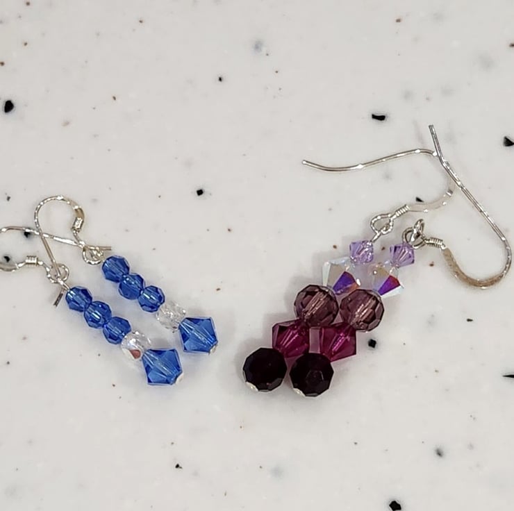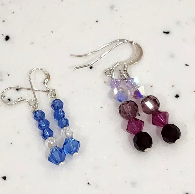 Two pairs of crystal bead earrings.4mm & 6mm bicone and round crysals. Sterling silver ear hooks and wires.