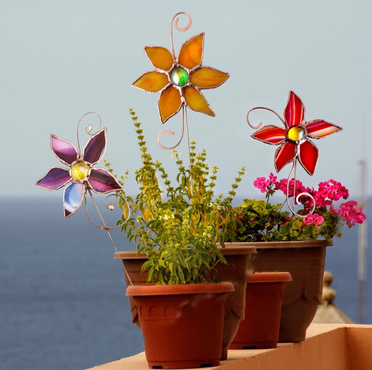 I'm offering three of my stained glass plant pot ornaments at a great price because sometimes one is just not enough!