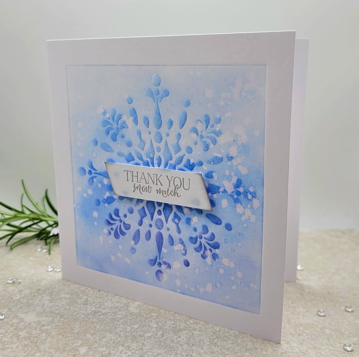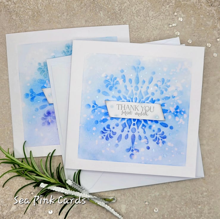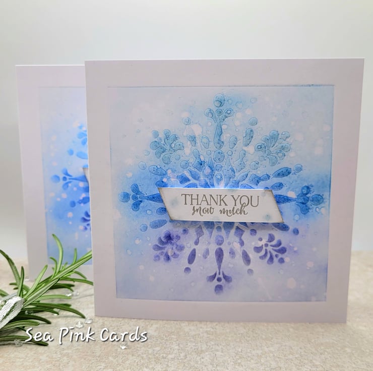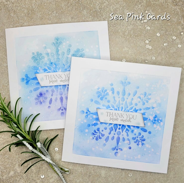 Thank You Cards. Thank You Snow Much, that is the sentiment of this set of two handmade thank you cards. Each card has been designed and individually made in my craft room. A lovely way to show appreciation and thanks, with a seasonal theme.