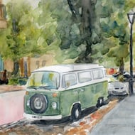 120 piece jigsaw puzzle printed from a painting of a Calvary Coaches Bedford OB working a tour of the Northumberland Coast.The red bus behind is a United Bristol L5G on a service to Belford.