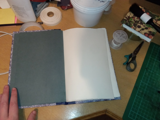 Made with a good quality laid Ingres paper which I've cut and torn to size by hand before sewing with linen thread on cotton tape. The spine was then glued and the cover then endpapers attached.