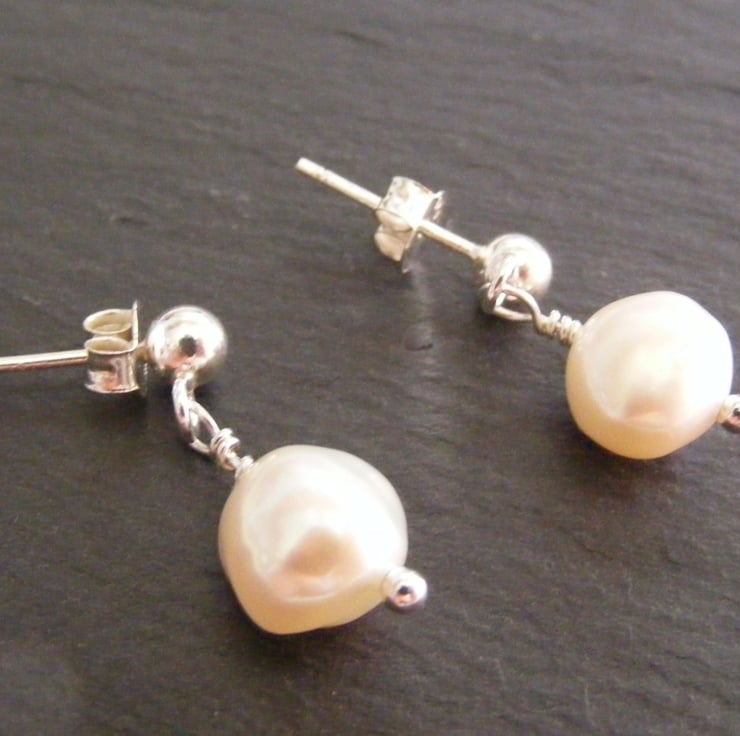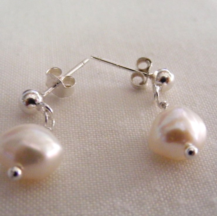 Earrings are handmade with white freshwater pears, Sterling silver headpins and 925 stamped sterling silver studs with backs.
