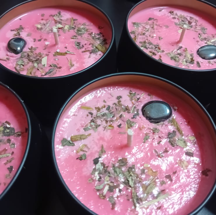 The underworld candle is designed for ancestor work, pomegranate scented and set with herbs and hematite. This can be used during spell work or as a simple reminder to your loved ones you're thinking of them. All tin spell candles are hand poured, made with soy wax and are approx 175g each.