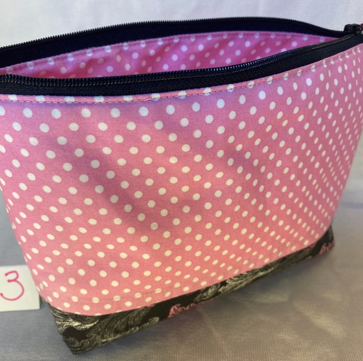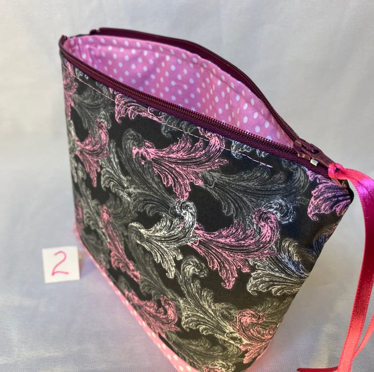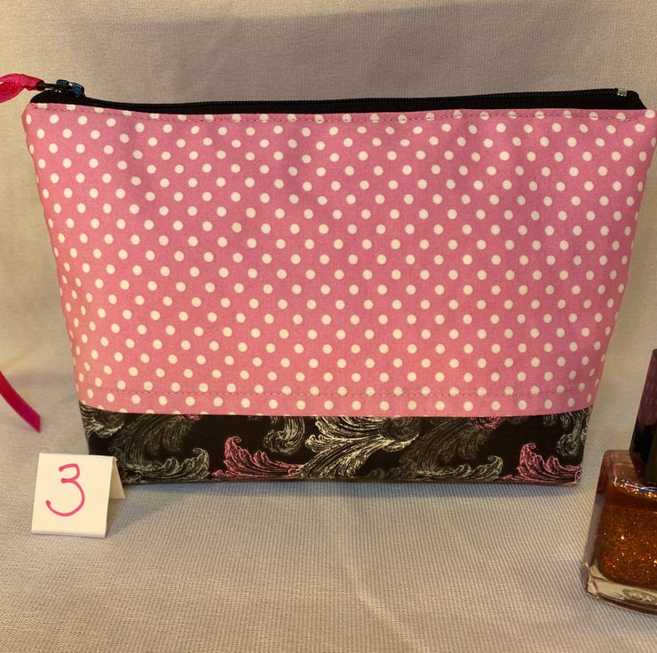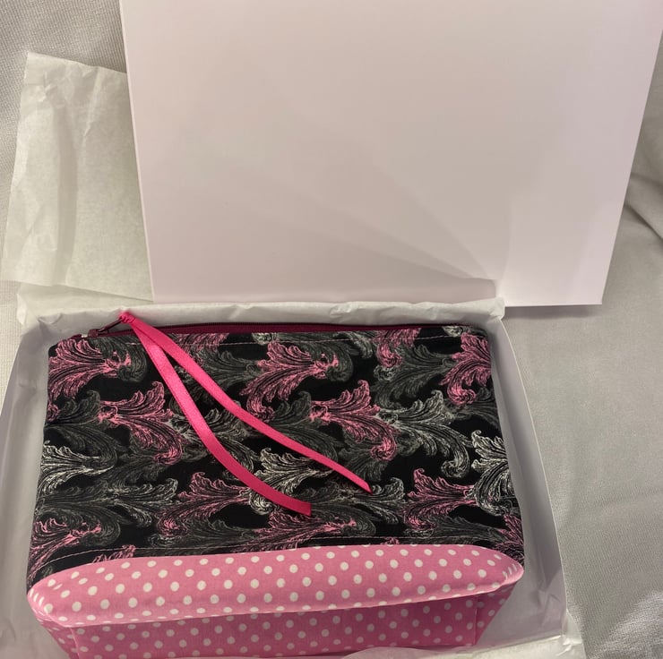 Pinks and black make this Cosmetic bag a very nice gift. ( Even more so if you add something romantic to it.)