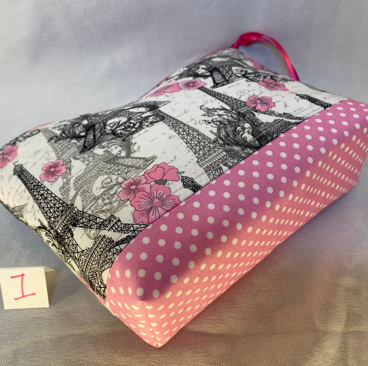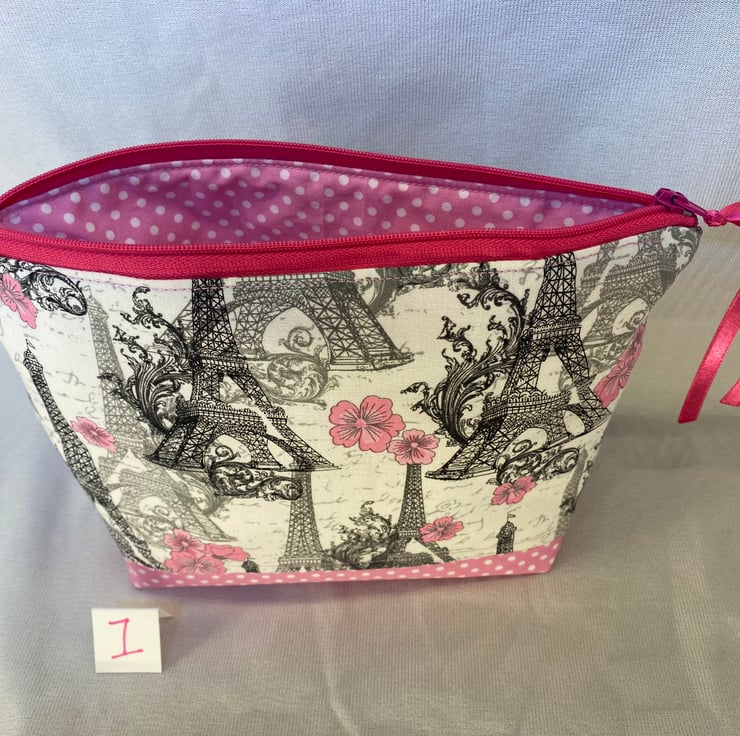 I made the three bags in this listing in a nice cotton fabric, fully lined, with a zip fastener and ribbon pull.