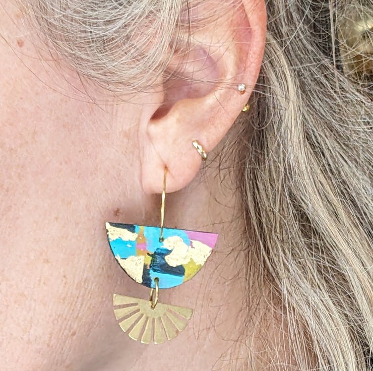 Super lightweight and comfortable to wear, created using a laser cutter on 3mm eco-friendly birch plywood. They are then individually sanded and carefully painted using low toxic acrylic paint, finished with gold leaf detail and low toxic varnish.