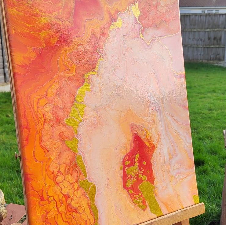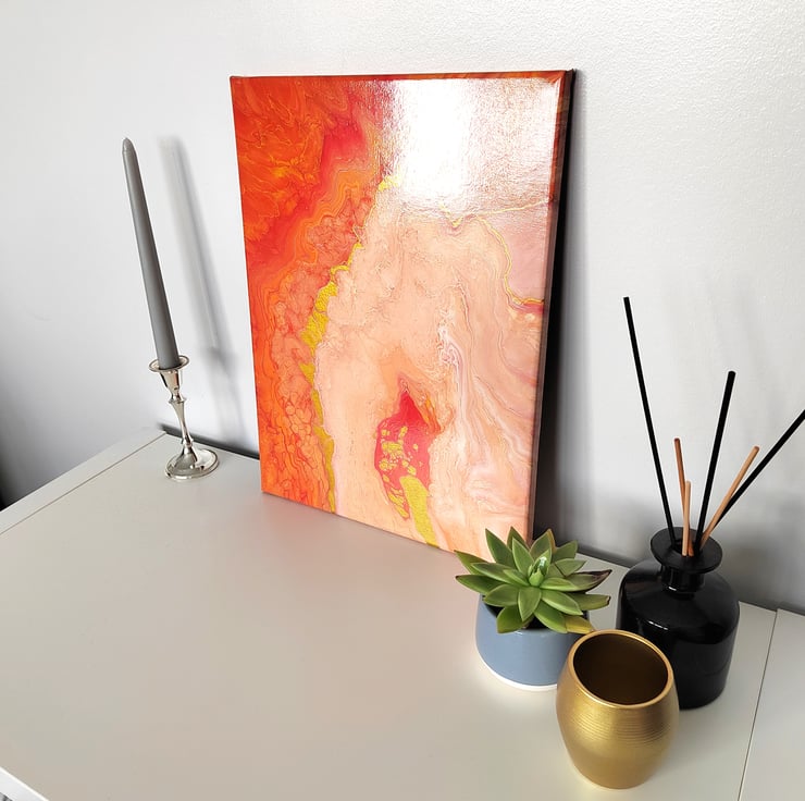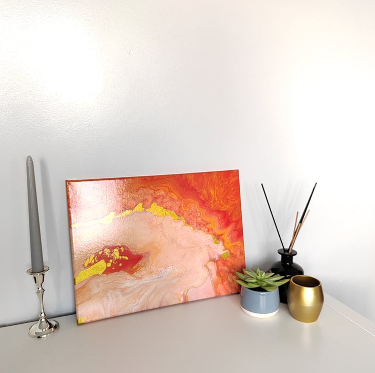 Ready to pack and go, this Abstract Orange Marble acrylic painting will bring to life any corner of your home or office. It is a unique modern art piece that is one of a kind, signed by me, so no one else will have what you have.