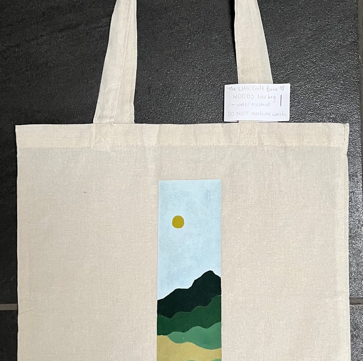 These cotton tote bags are hand-painted with acrylic paints. This unique, one of a kind design was inspired by the woods. It is one of multiple designs - take a look at my shop page to find others that are available.
