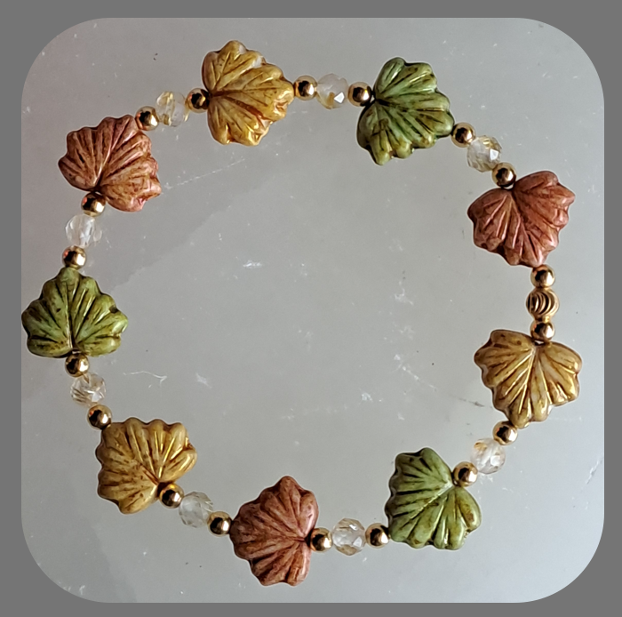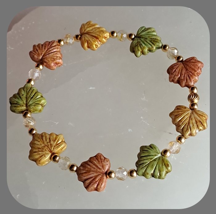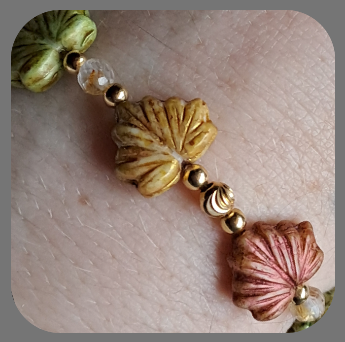 Pretty bracelet made with warm coloured Czech glass leaves, Golden Healer and vermeil (gold plated sterling silver).