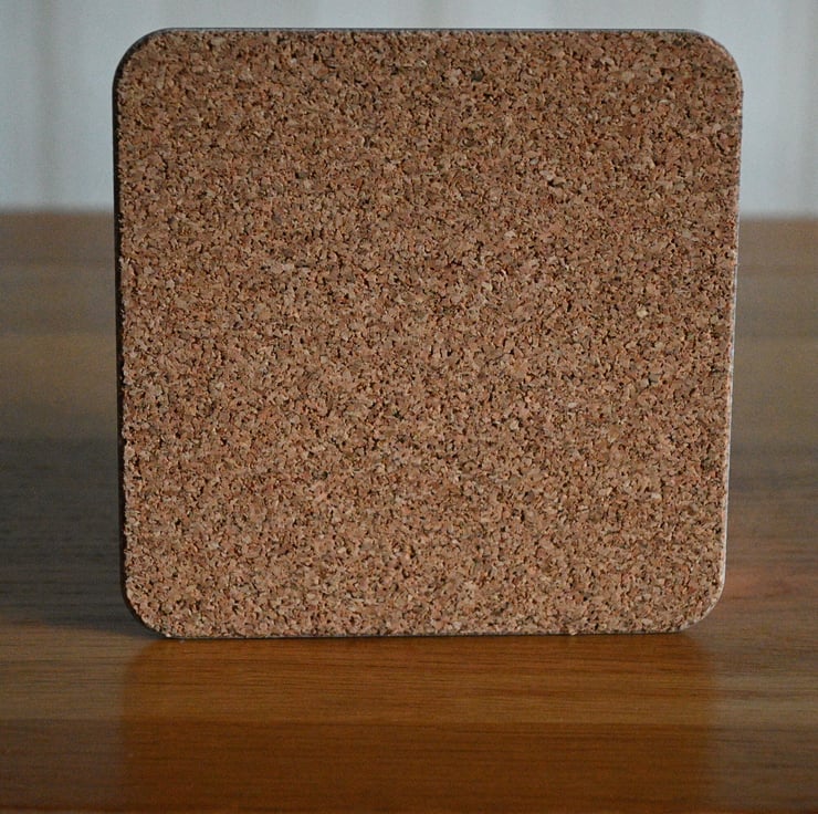 Each coaster measures 10cm x 10cm and has a sustainably sourced eucalyptus board base with a wipeable glossy melamine surface and cork backing.