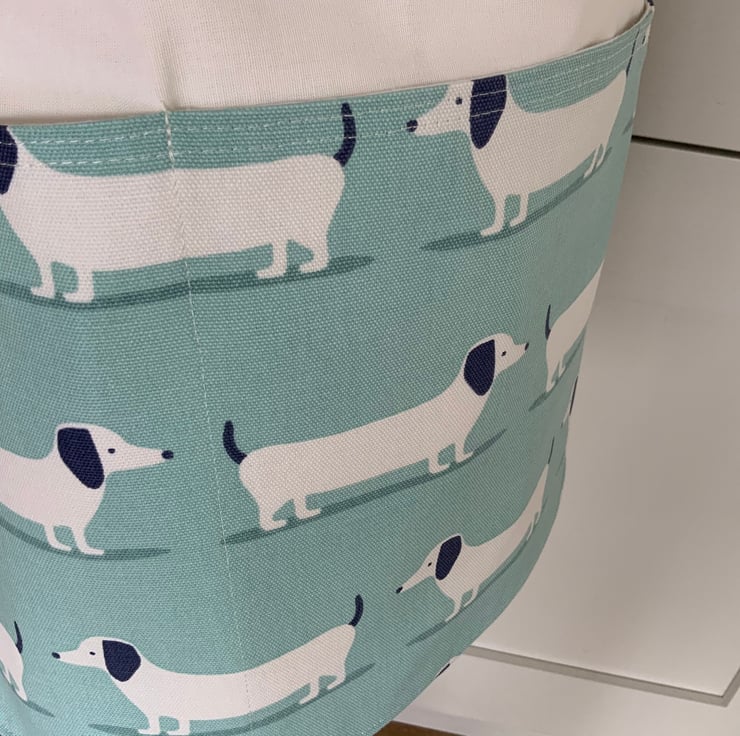 Beautiful fully lined half apron with front pockets and extra long straps. Made from 100% cotton combining dachshund fabric on a cream background. This apron is fully lined both inside the pockets and on the reverse. The front pocket is divided into three useful sections.