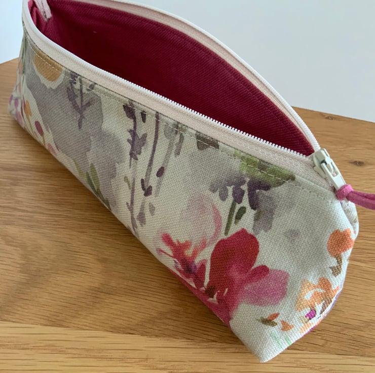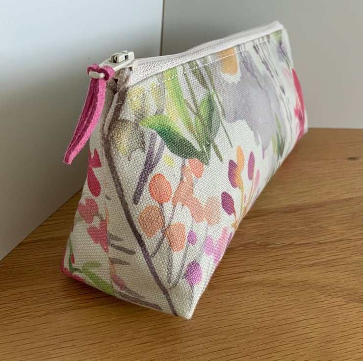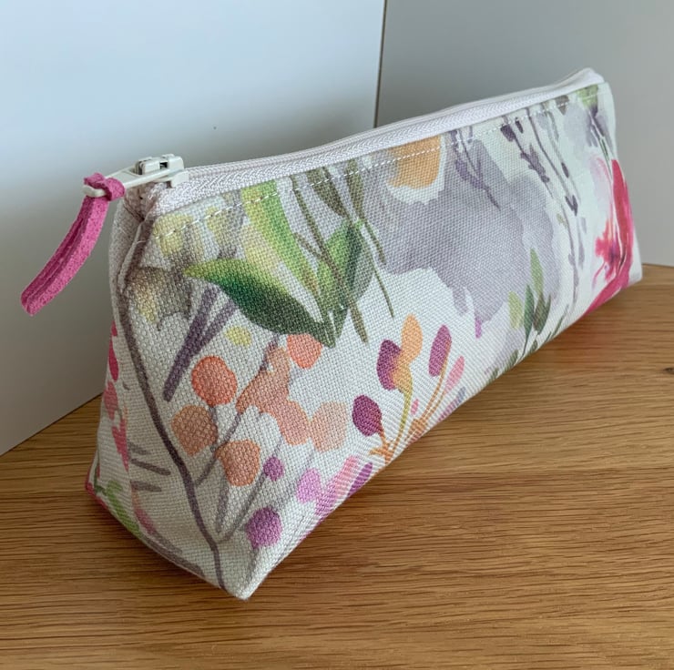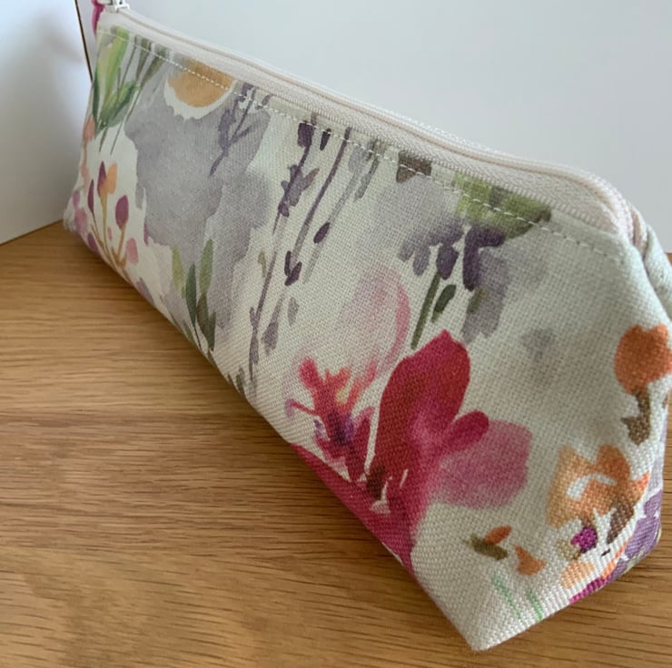 Beautiful square bottomed zipped purse, perfect as a brush case, pencil case or cosmetic bag.