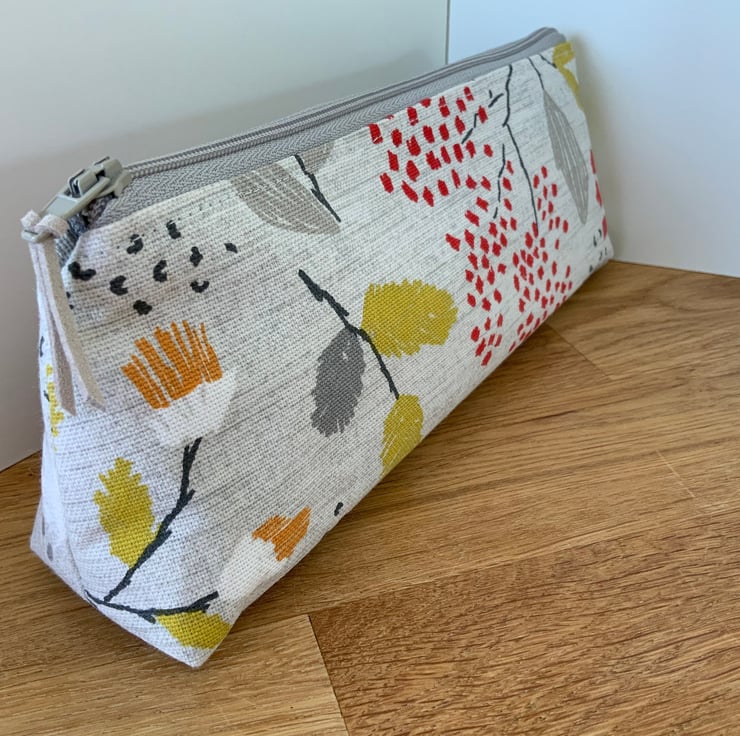 Beautiful square bottomed zipped purse, perfect as a brush case, pencil care or cosmetic bag.