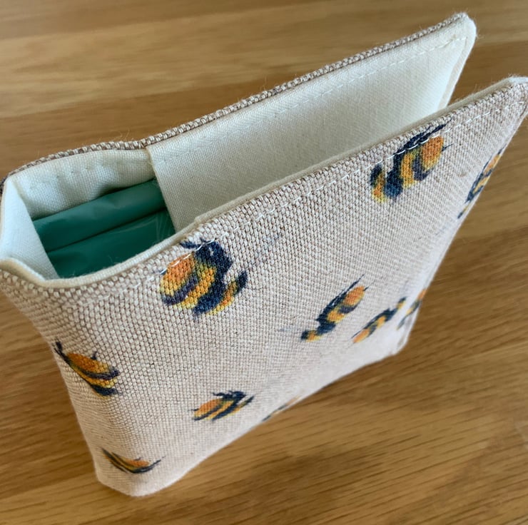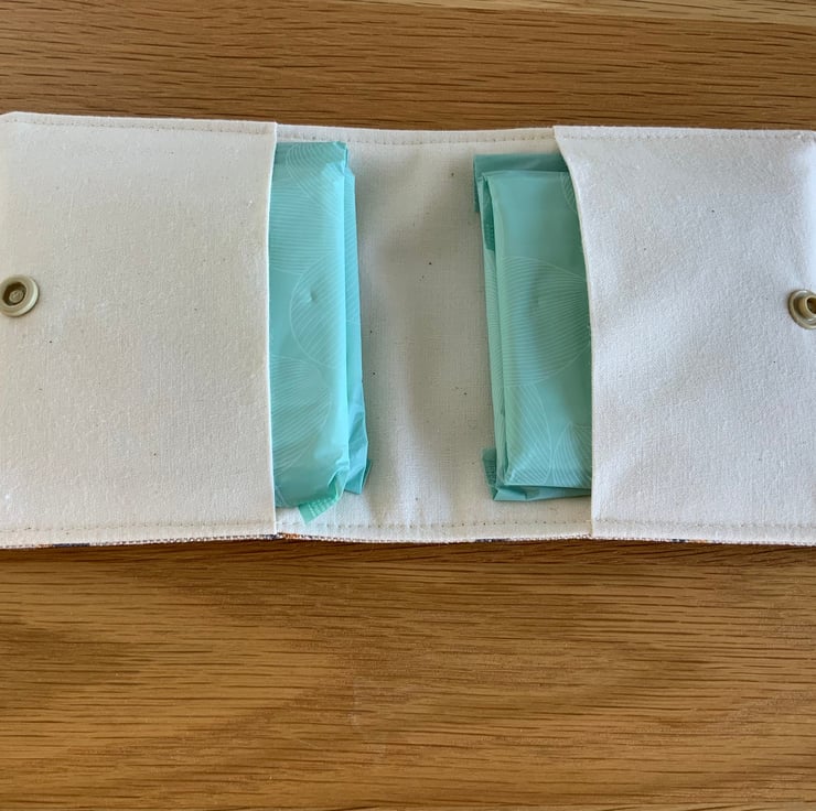 A beautiful storage pouch case to hold your personal feminine care products. A case which can be easily stored in your hand bag, school bag, beach bag, office drawer, car etc. I have made these in various fabrics with coordinating linings and interlined to give a slightly padded feel. Finished with a plastic snap fastener internally to keep it closed.