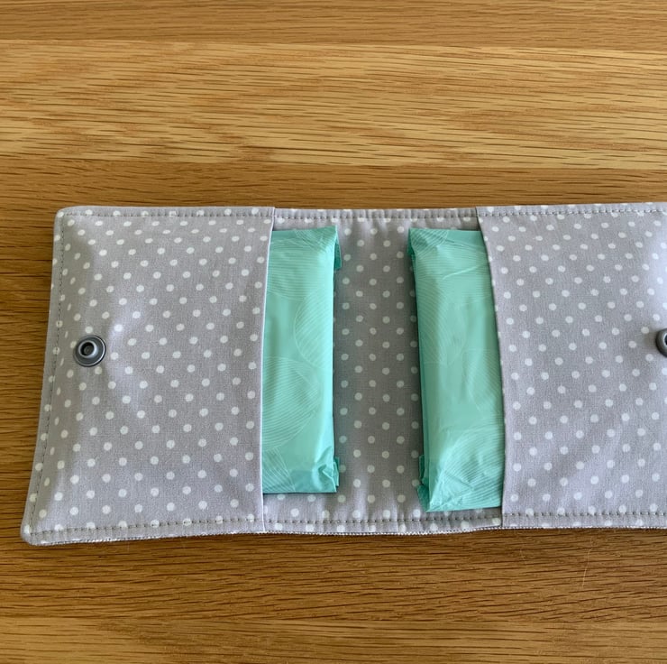 A beautiful storage pouch case to hold your personal feminine care products. A case which can be easily stored in your hand bag, school bag, beach bag, office drawer, car etc. I have made these in various fabrics with coordinating linings and interlined to give a slightly padded feel. Finished with a plastic snap fastener internally to keep it fastened.