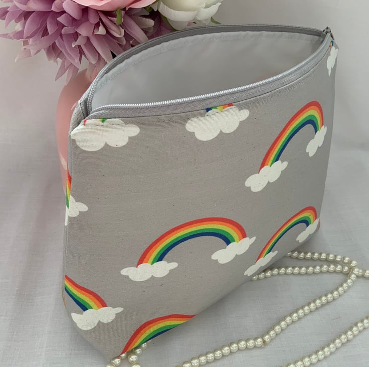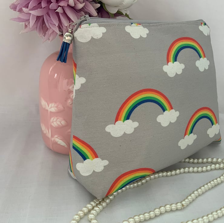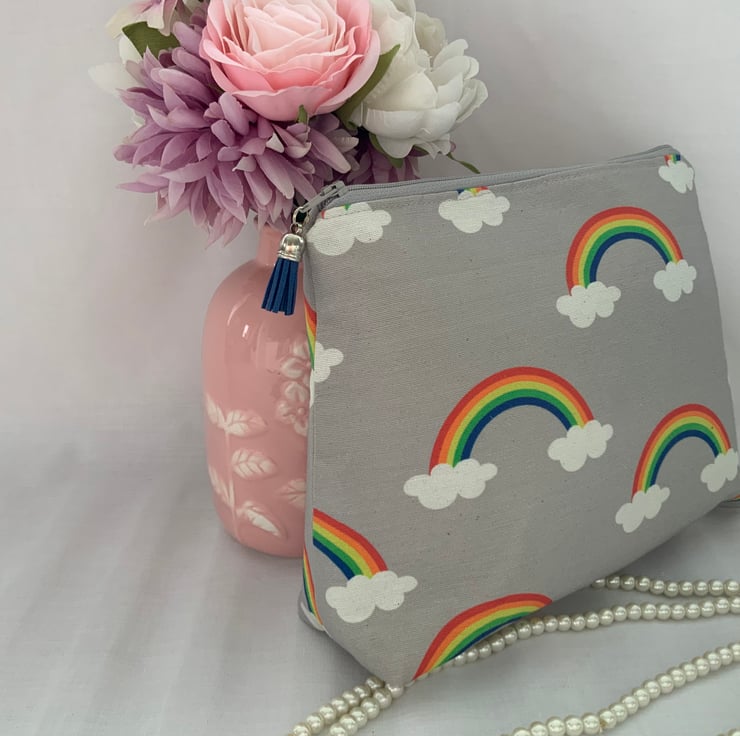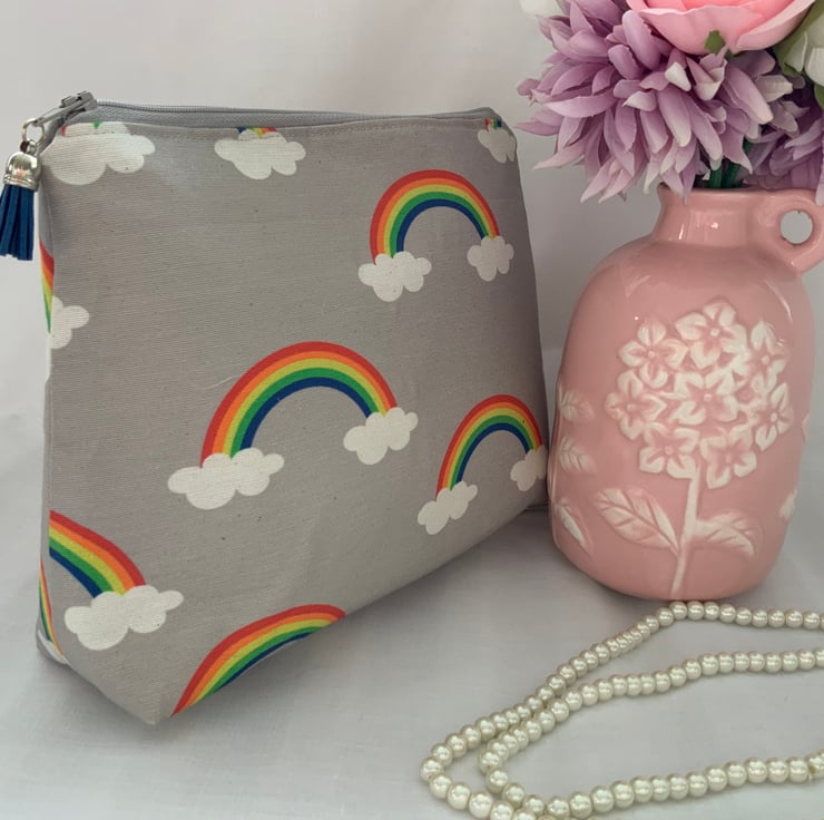 A gorgeous wash bag perfect for storing your toiletries or cosmetics. It would look stylish on display in a bathroom or on a dressing table but also perfect as a travel accessory to carry your toiletries or cosmetics. This bag is interfaced to give it structure and is lined with a white water resistant fabric. The zip is finished with a matching tassel.