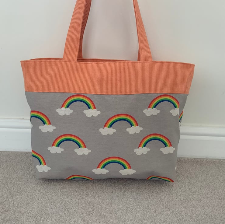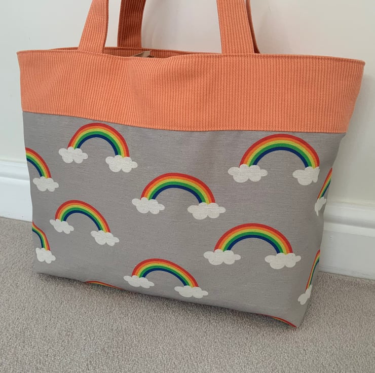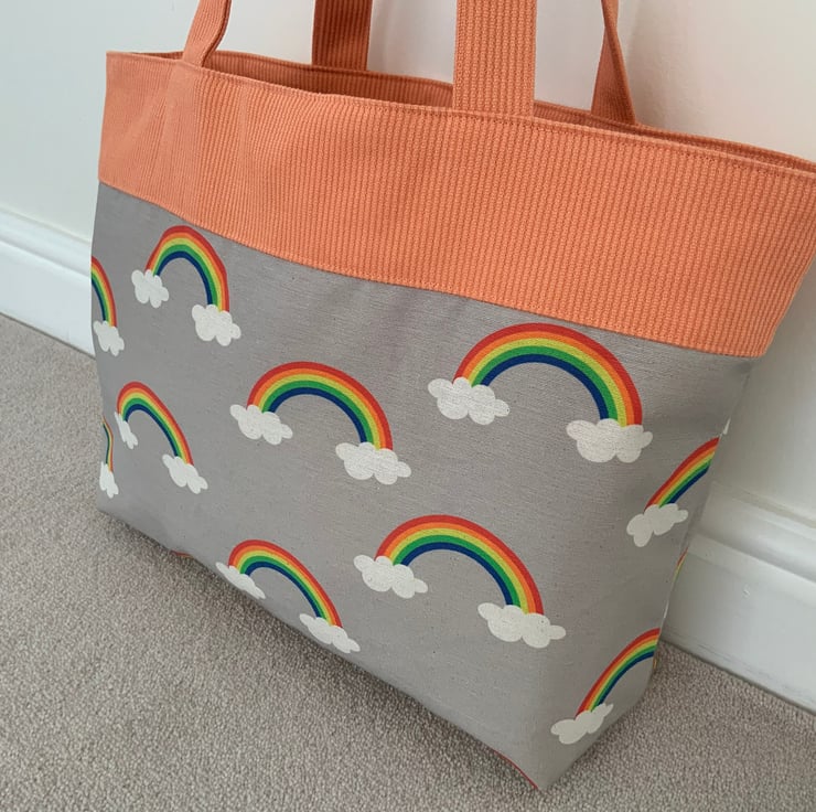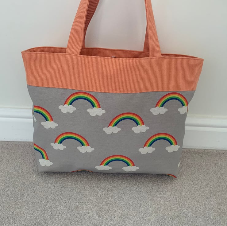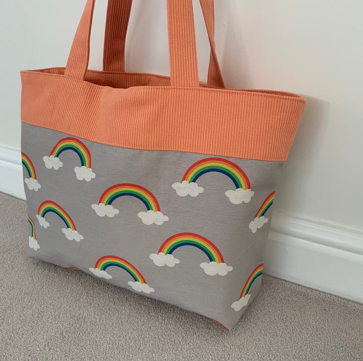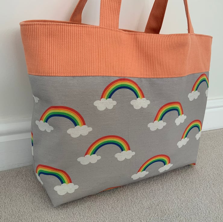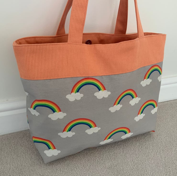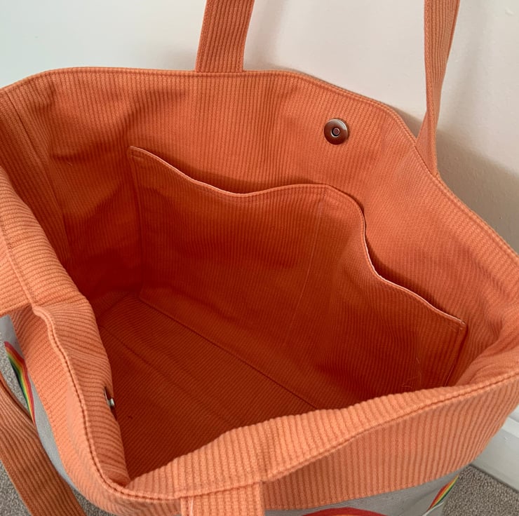 Beautiful fabric tote bag. A perfect bag for day to day use for work, school, beach or shopping. Made from quality 100% cotton and interlined to give it structure. Internally, it has a large slip pocket divided into two sections and is fitted with a magnetic snap closure. The square bottom gives the bag extra depth.
