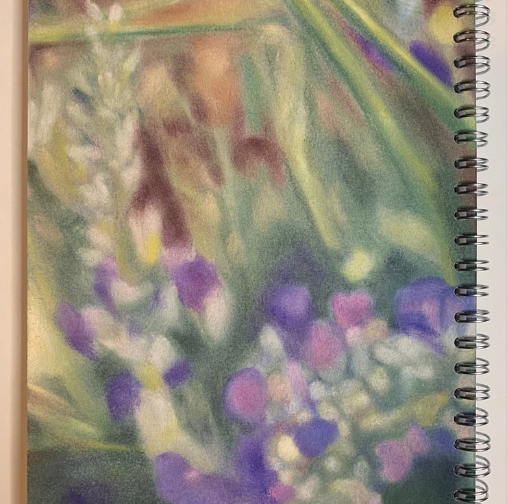 Spiral Bound A5 notebook. The cover art is taken from my original pastel painting and is printed on both the front and the back. The cover paper is 345gsm. There are 60 pages (30 sheets) of 170gsm plain paper inside which can be used for notes or sketches.