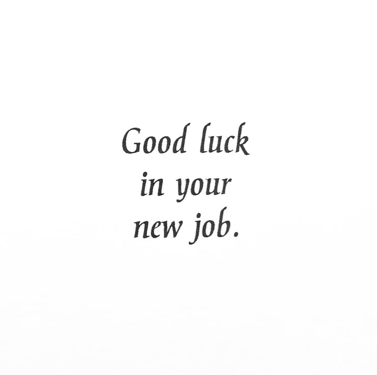 The message inside reads "Good Luck in your new job" in dark grey print.