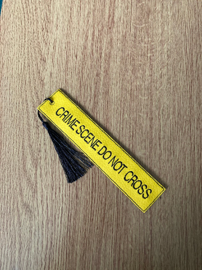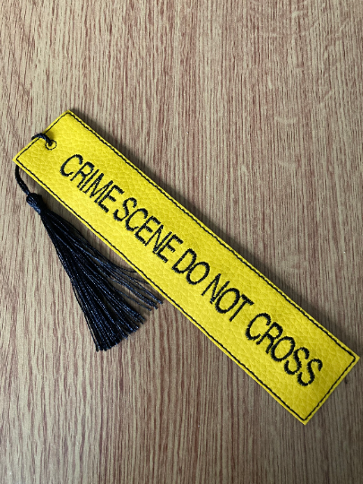 Crime scene do not cross bookmark made from vinyl and backed with felt.