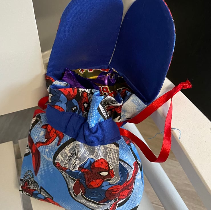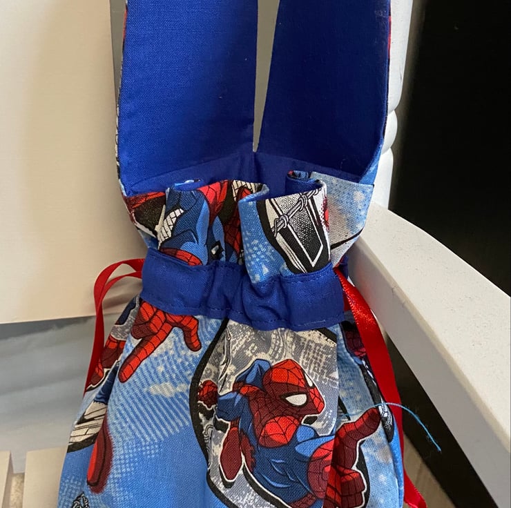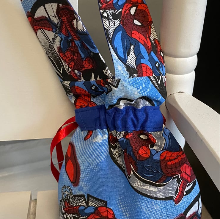 A Spiderman Easter bunny shaped bag perfect for filling with sweets or other treats. It would be ideal for use on an Easter egg hunt.